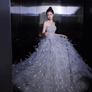 Vestidos Super Fairy Feather Temperament Piano Vocal Performance Vestidos